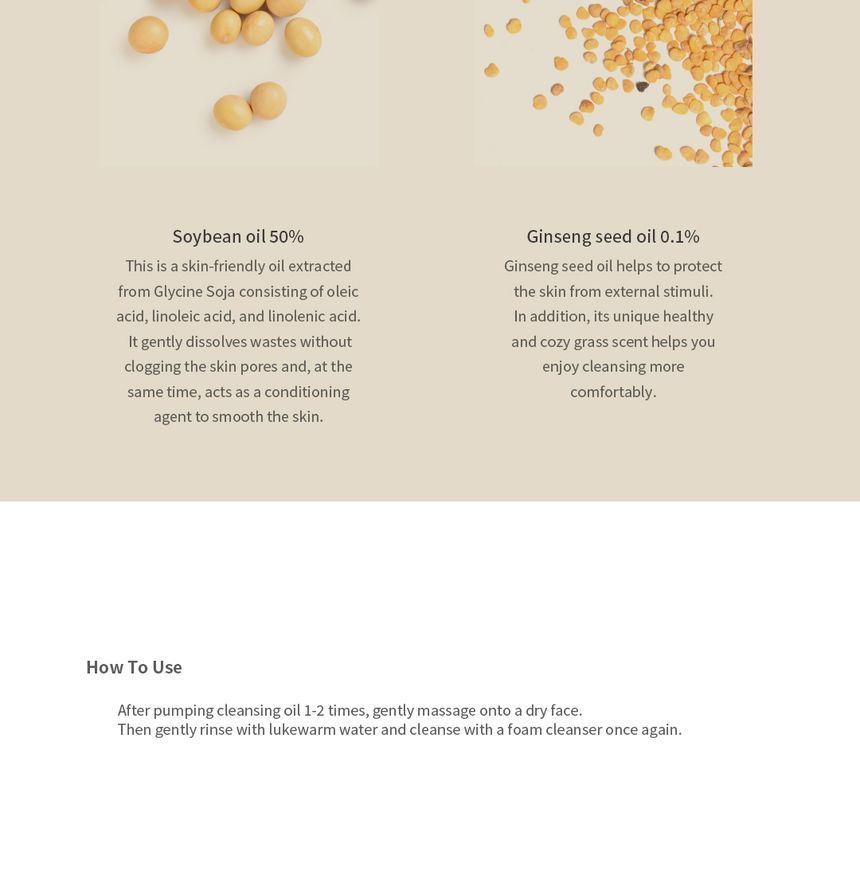 Featuring a gentle formula, it uses micellar technology to effectively cleanse the skin by attracting and encapsulating dirt and sebum, which can then be easily washed away. Its lightweight base, primarily composed of soybean oil, ensures deep cleansing without leaving any residue, while ginseng seed oil adds a protective and soothing scent to enhance the cleansing experience.