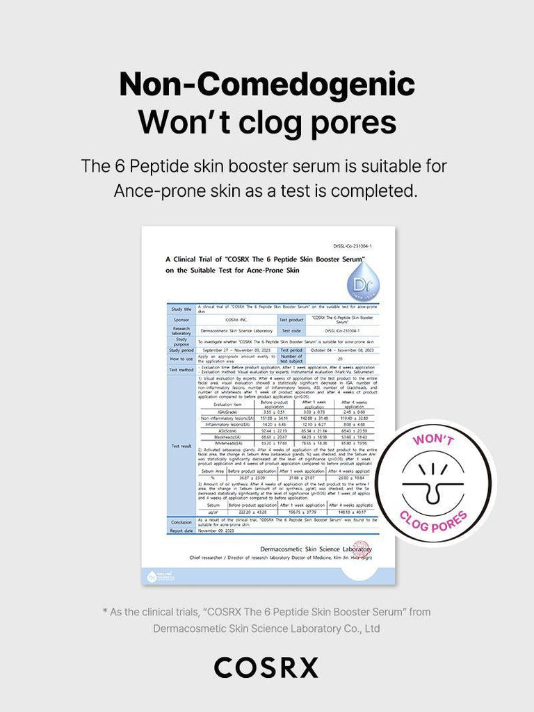 COSRX The 6 Peptide Skin Booster is a multi-tasking serum designed to address various signs of aging and improve overall skin health.