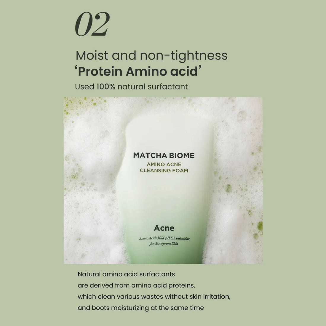 This low-pH (around 5.5) foam cleanser combines the power of Matcha extract, probiotics (from the Biome line), and amino acid-based surfactants to cleanse the skin without stripping its natural moisture barrier. It aims to remove impurities, excess sebum, and help soothe inflammation associated with acne.