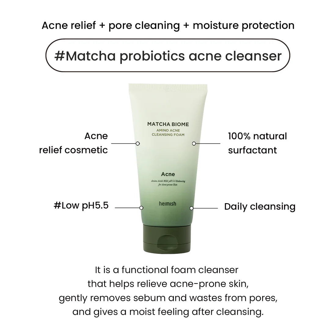 The Heimish Matcha Biome Amino Acne Cleansing Foam is a gentle yet effective cleanser specifically formulated for acne-prone and sensitive skin.