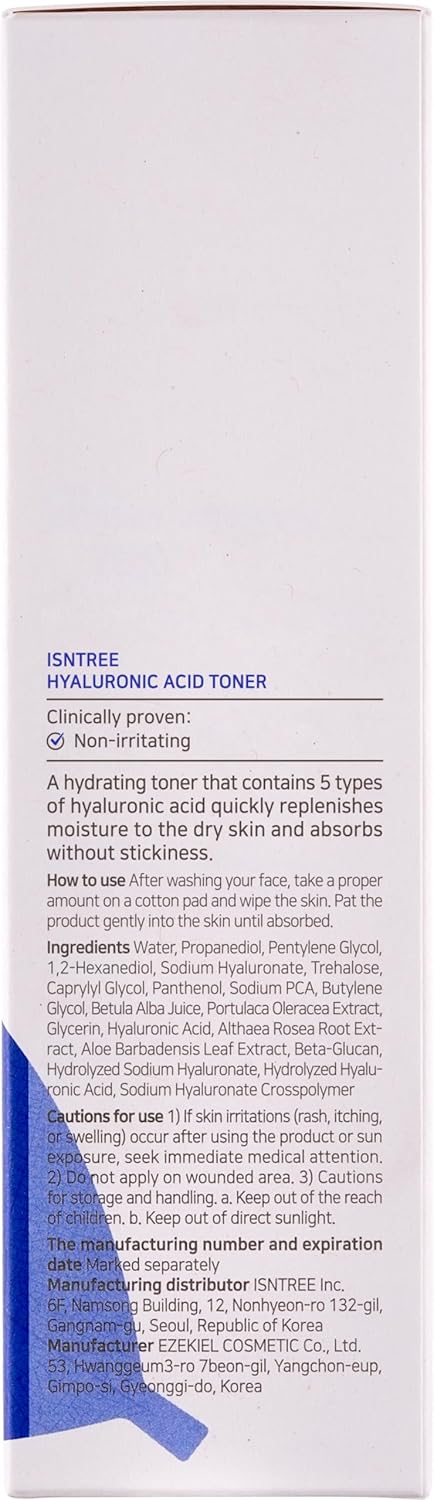 The ISNTREE Hyaluronic Acid Toner is a hydrating toner designed to replenish moisture and soothe dry, parched skin.