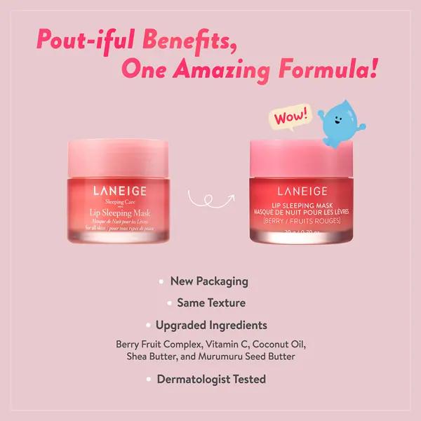 Experience the magic of LANEIGE Lip Sleeping Mask and transform your lips overnight. Embrace the power of hydration and bid farewell to dry, cracked lips. Wake up to a velvety-smooth pout that's ready to shine, day or night. Make LANEIGE your lip care essential today.