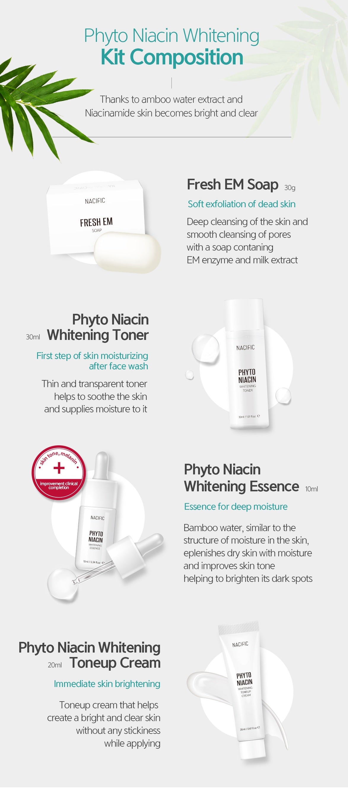NACIFIC PHYTO NIACIN WHITENING KIT (Soap 30g+Toner 30ml+Essence 10ml+Cream 20ml)