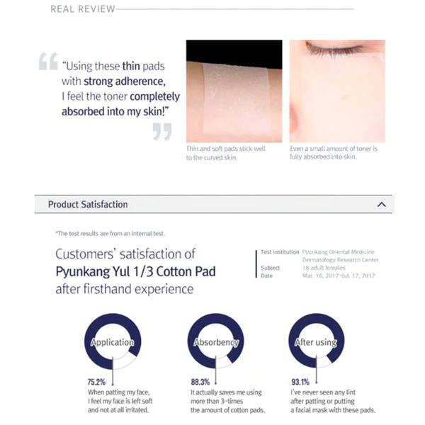 You will love these pads since they don’t absorb your expensive products like the regular cotton pads. Also perfect if you want to make your own sheet masks or spot treatment pads with your serums and essences. Elevate your skincare game with Pyunkang Yul's 1/3 Cotton Pads for a superior, spa-like experience.